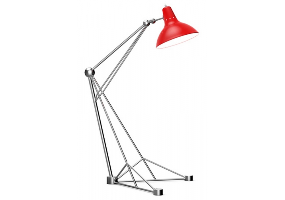 Diana firmata da DelightFULL è una lampada da terra realizzata in acciaio con finitura nichelata, questa lampada da terra ha un paralume flessibile molto grande che presenta una laccatura rossa lucida all'esterno e una finitura interna bianca opaca.