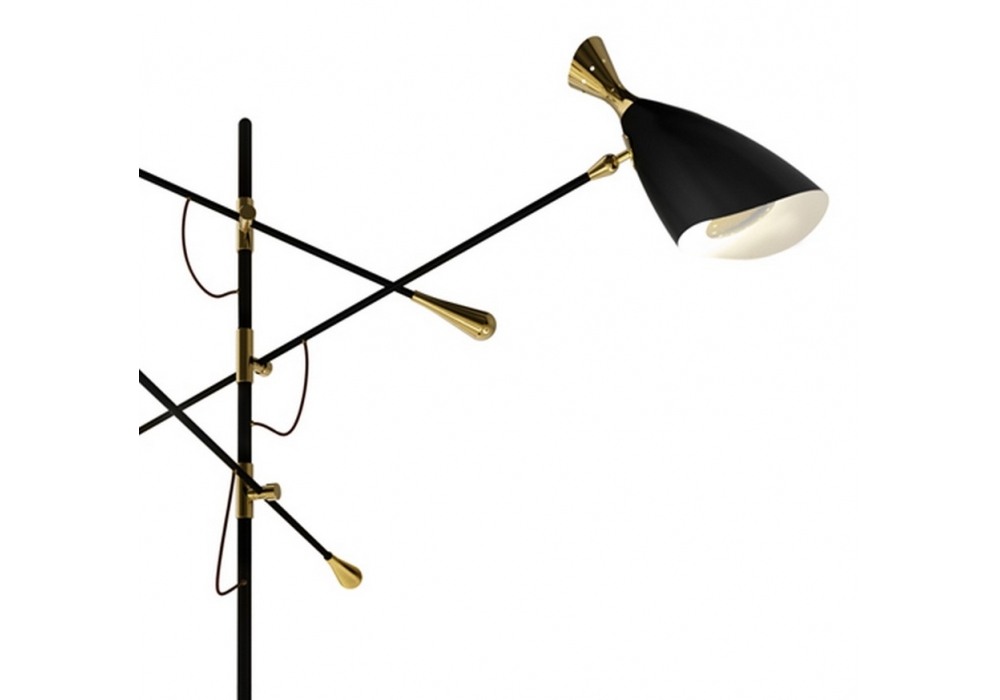 Duke firmata da DelightFULL è una lampada da terra realizzata in ottone è composta da tre bracci e ogni paralume a cono è condotto da un braccio in ottone e dal suo contrappeso.