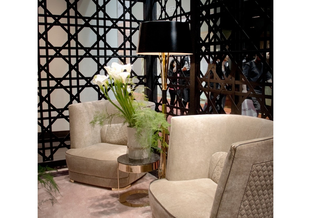 Miles firmata da DelightFULL è una lampada da terra con una struttura 100% fatta a mano in ottone, placcata oro e una base in marmo portoro nero.