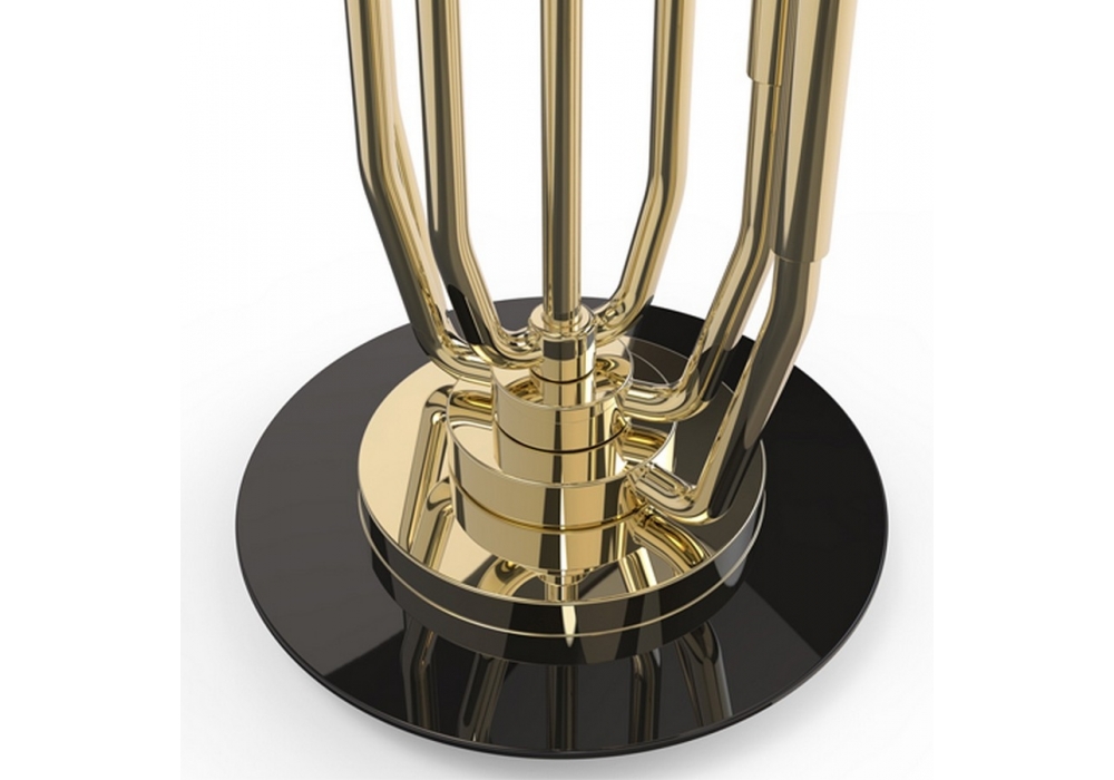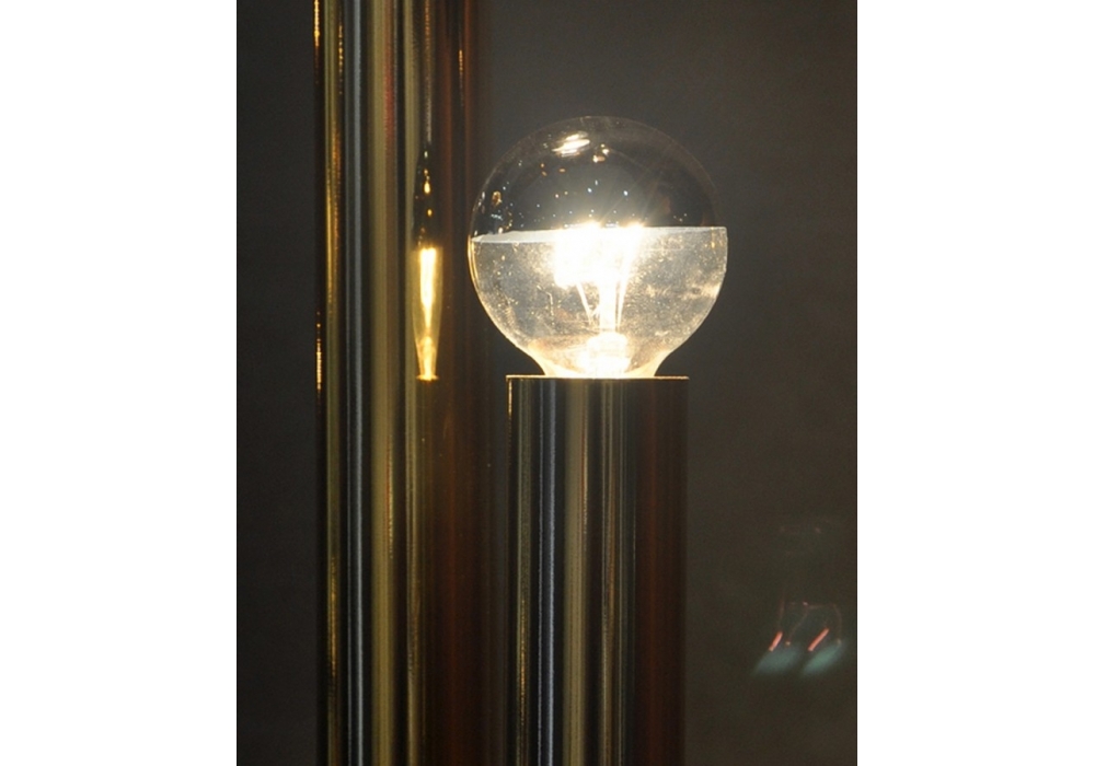 Stardust firmata da DelightFULL è una lampada da terra costruita con tubi di ottone in una forma oblunga arrotondata, le lampadine sono disposte allo stesso modo di un candelabro.