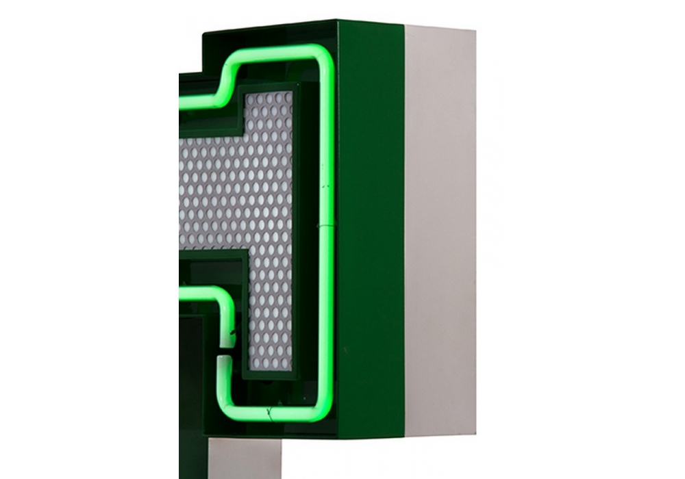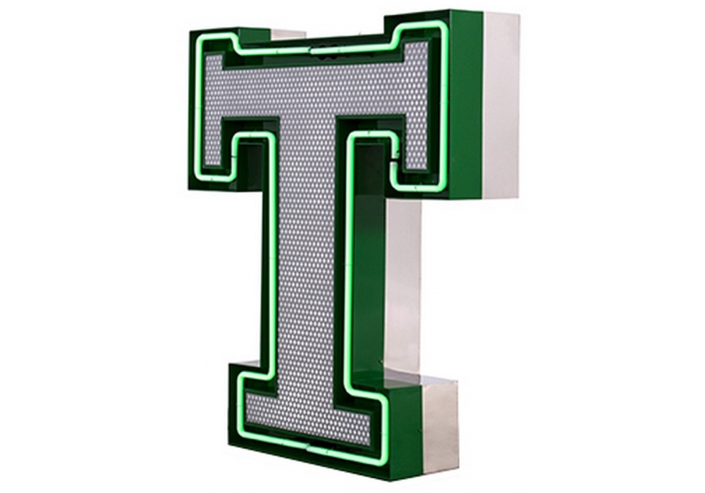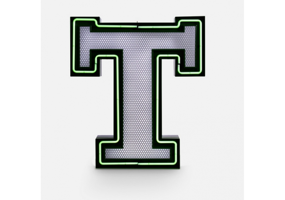 Graphic Collection - Letter T è una lampada firmata da DelightFULL. Questa lampada riadatta lo stile retrò con un mix di stile urbano. La miscela di neon verde con il LED all'interno accende questa lettera in modo quasi ipnotico. Può essere posizionata anche all'esterno. Si può mettere a terra o su parete.