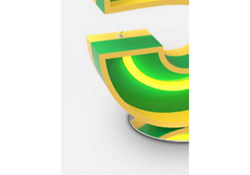 Graphic Collection - Number 5 è una lampada neon firmata da DelightFULL. Ha una forma molto sottile, morbida e rotonda. Il colore giallo del neon è brillantemente associato al contorno giallo opaco e alla base verde smeraldo opaco. Questa lampada darà alla vostra casa un tocco di originalità. È inoltre possibile utilizzarla all'esterno. Installazione a terra o a parete.