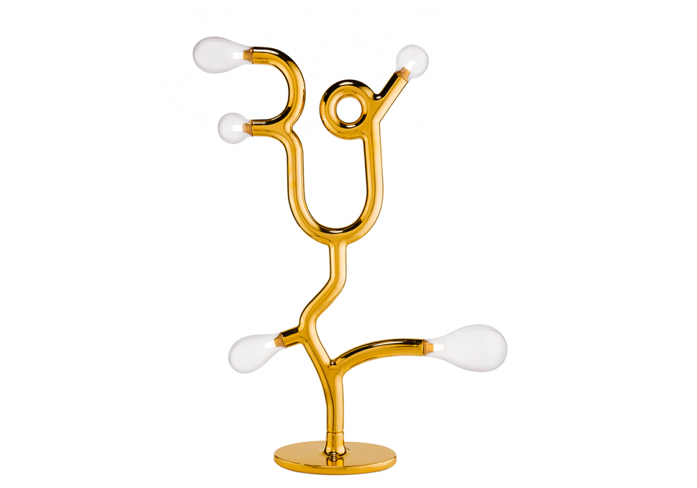 The Five Bulb firmata da Matteo Cibic per Scarlet Splendour è una lampada da terra a luce bianca calda. É realizzata in ceramica con finitura oro 24K e vetro soffiato a mano.