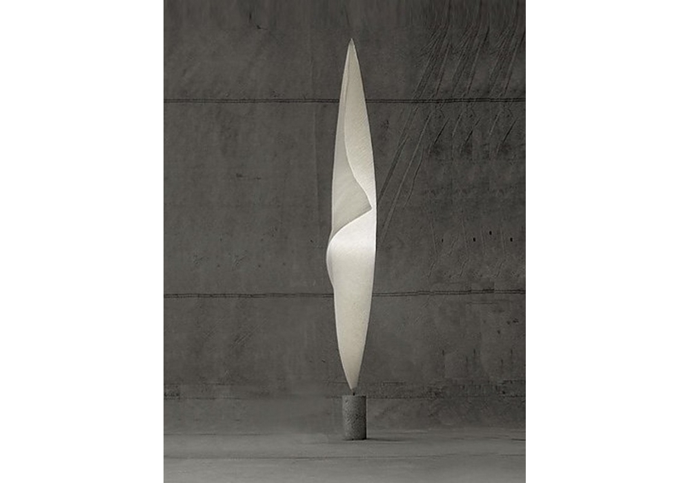 Wo-Tum-Bu 1 firmata da Dagmar Mombach per Ingo Maurer è una lampada da terra in carta, calcestruzzo, metallo, acciaio inossidabile e schermo in fibra di vetro. Con varialuce elettronico a regolazione continua. Non adatta all'uso in ambienti ad alta umidità.