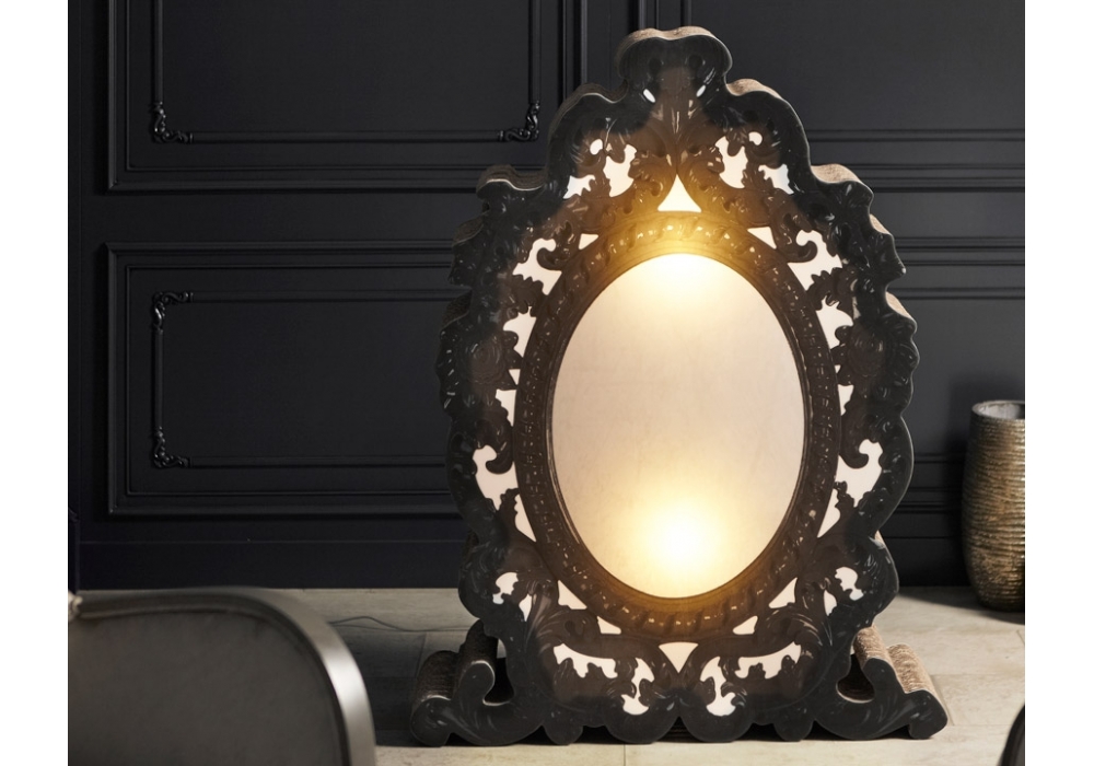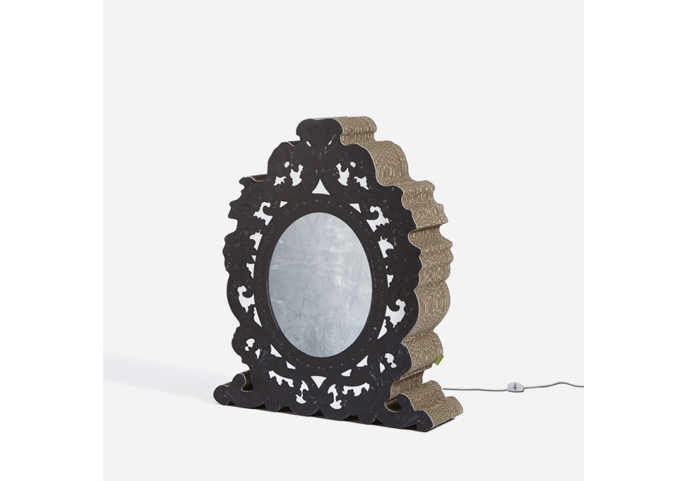 Dorian di Kubedesign è un'esclusiva lampada decorativa da terra in cartone tridimensionale contenente all’interno 2 lampadine. Finitura con speciale grafica Rococò Mirror, rivestimento texturizzato con diffusore frontale in metacrilato e retro in materiale rigido antiurto stampato.