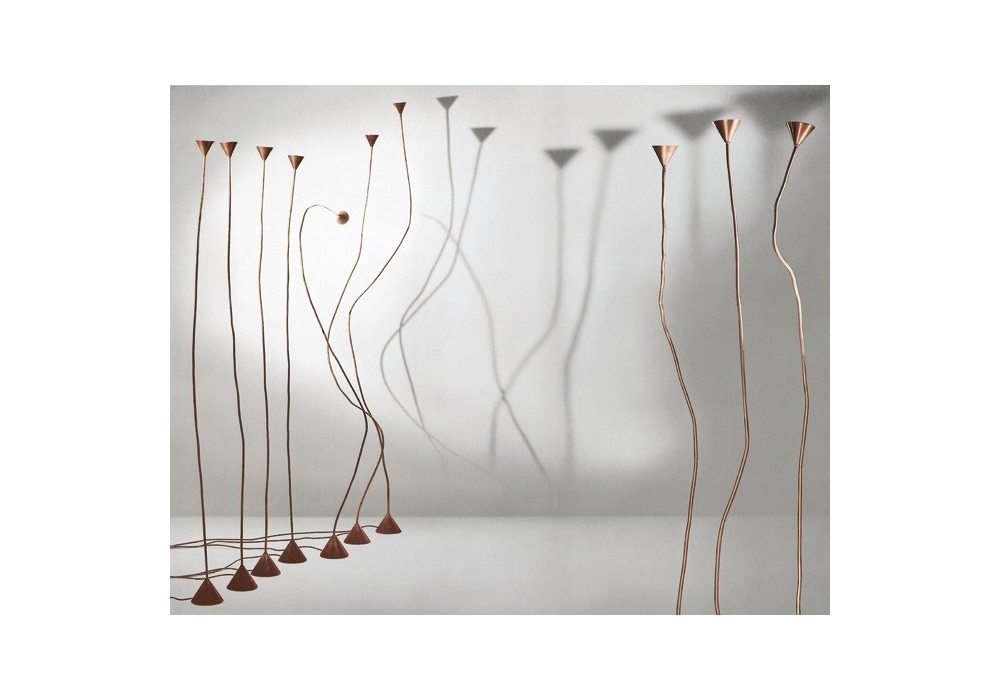 Papiro firmata da Sergio Calatroni per Pallucco è una bellissima lampada da terra disponibile in 2 diverse dimensioni. Direzionabile, elegante e facilmente riconoscibile grazie al suo stile "organico" ed alla sua estetica d'impatto, Papiro ritorna con 2 novità: il nickel nero lucido e l'oro perlato, in aggiunta alla finitura rame.