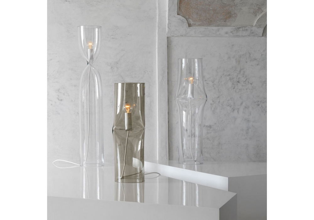 Press Lamp disegnato da Nendo per Lasvit è una lampada da terra. Realizzata in vetro soffiato a mano. Non ha nessuna parte in metallo, la sua compressione produce una forma morbida e dona alla lampada un aspetto singolare. Questo prodotto è disponibile in due diverse finiture e dimensioni.