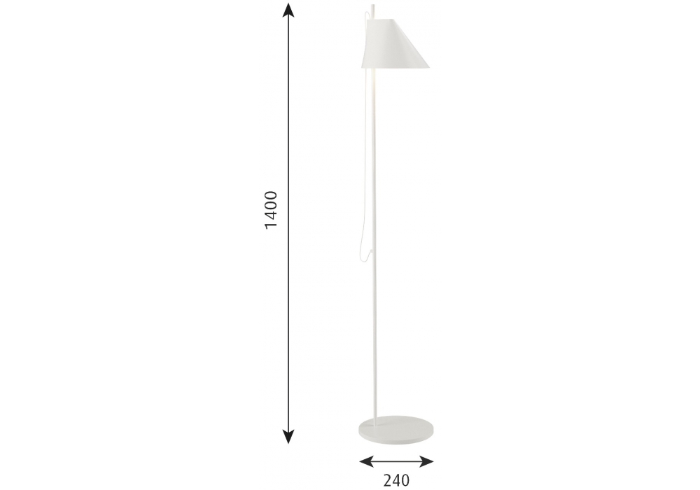 Yuh firmata da GamFratesi per Louis Poulsen è una lampada da terra con base circolare in alluminio o marmo e stelo verticale in ottone spazzolato. Il diffusore è in alluminio pressofuso verniciato e scherma una sorgente luminosa di tipo LED dimmerabile alimentata da un cavo in materiale plastico. Yuh è disponibile in differenti finiture.