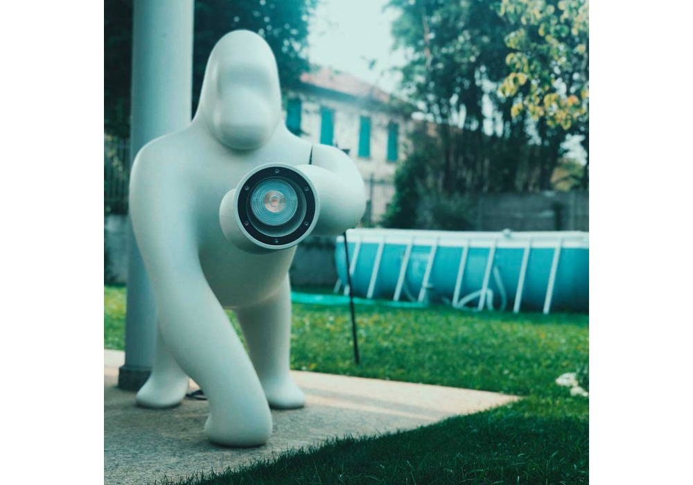 Kong firmata da Stefano Giovannoni per Qeeboo è una lampada da terra realizzata in polietilene. Kong è un oggetto unico, libero di stare in infinite ambientazioni e ambienti, è tecnologico e quasi umano, fa luce davanti a se proprio come se fosse saltata la corrente. Non fa paura come il vero Kong grazie allo sguardo immaginifico del designer che lo ha creato.