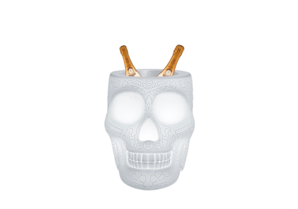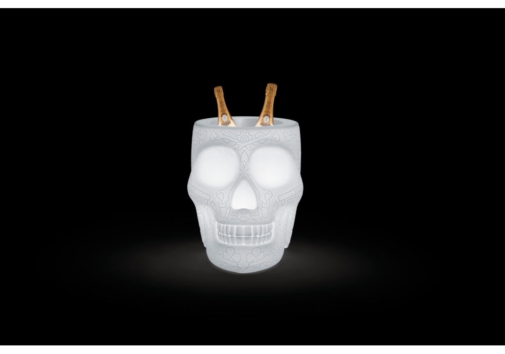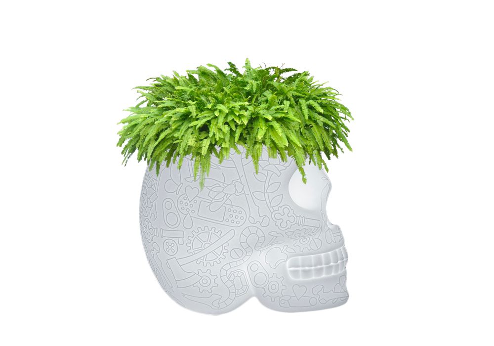 Mexico Planter firmato da Studio Job per Qeeboo è una lampada vaso realizzata in polietilene traslucido opaco bianco. Disponibile per esterno con 16 colori LED, telecomando, batteria ricaricabile con autonomia di 6 ore.