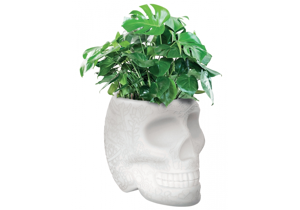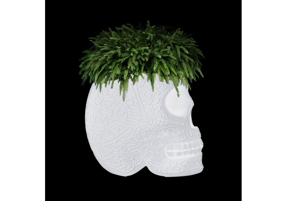 Mexico Planter firmato da Studio Job per Qeeboo è una lampada vaso realizzata in polietilene traslucido opaco bianco. Disponibile per esterno con 16 colori LED, telecomando, batteria ricaricabile con autonomia di 6 ore.