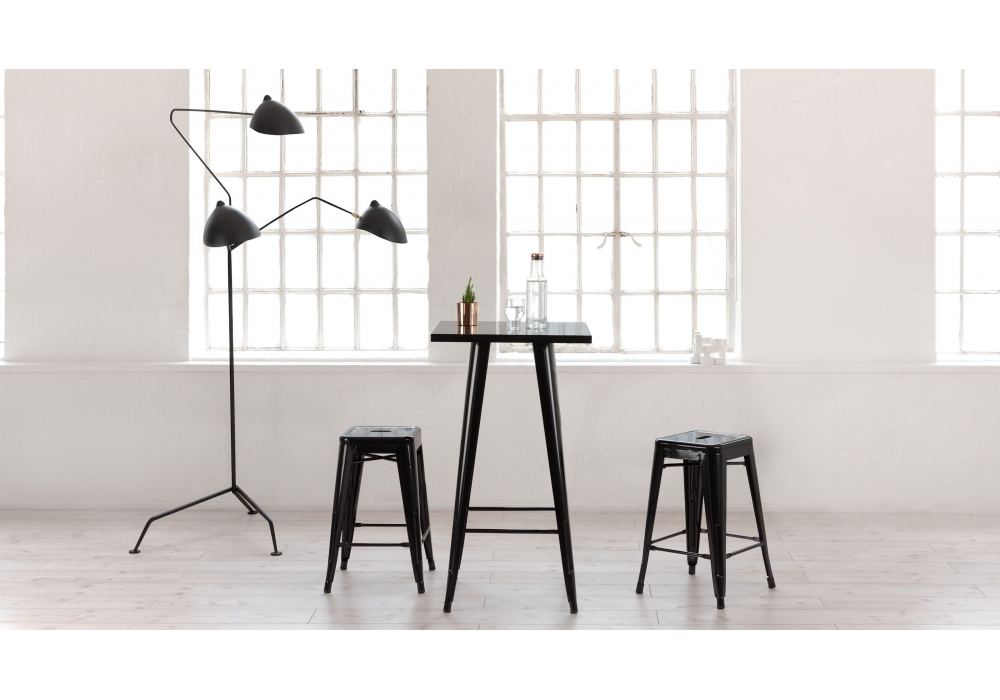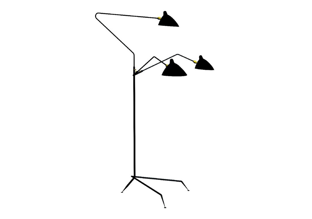 L3B firmata da Serge Mouille è una lampada da terra, re-edizione del modello originale del 1952. Ha 3 bracci in acciaio verniciato nero, i riflettori in alluminio laccato nero con interni bianchi e le giunzioni in ottone. Lampadina: E27 3x42W alogeno (inclusa) - interruttore a pedale.