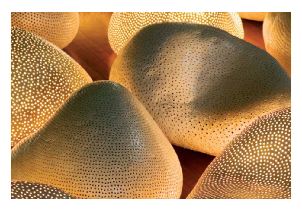 Sassi Luminosi firmata da Daniele Pianezzola per Bosa è una lampada da terra in ceramica dotata di molti piccoli fori su tutta la superficie, da cui fuoriesce la luce. Disponibile in diverse finiture.