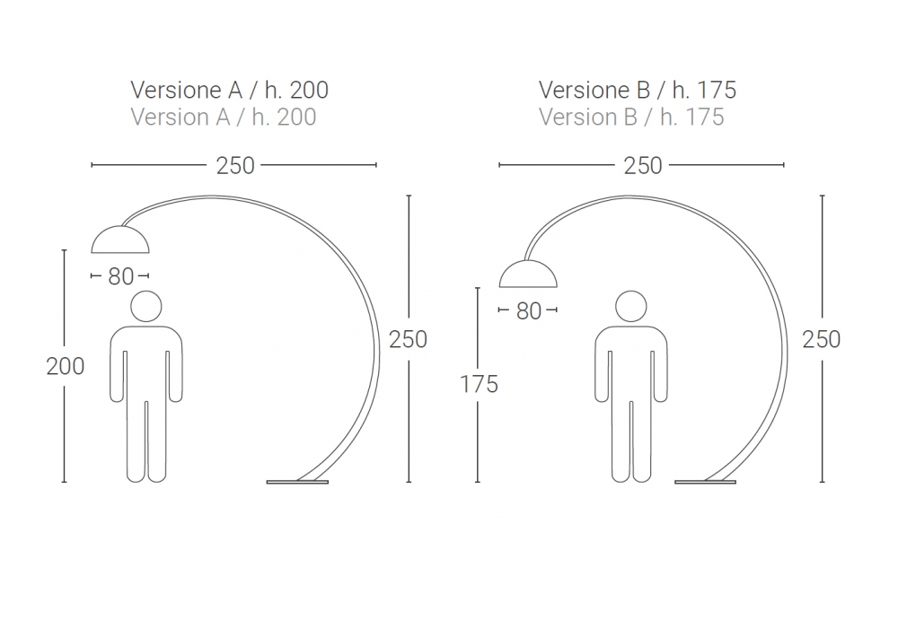 1962 Big firmata da Franco Zavarise per Zava è una lampada da terra con struttura in ferro e alluminio verniciato. Disponibile in diverse finiture e dimensioni. Driver incluso inserito nell’arco. Dimmerazione mediante pulsante presente sull’arco.