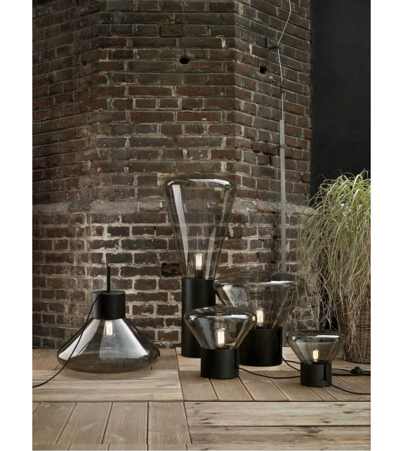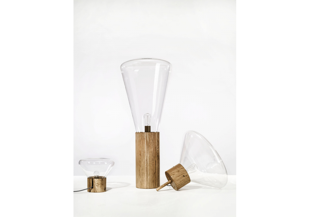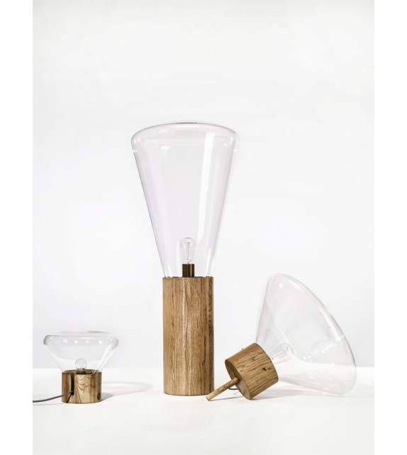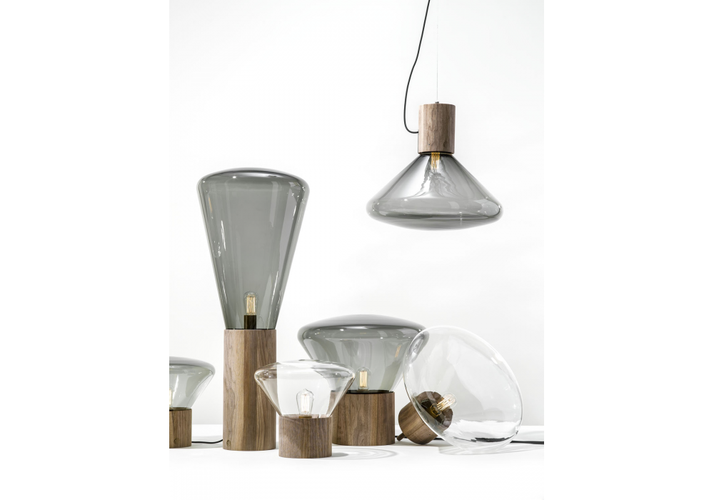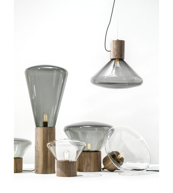 Muffins Wood 03A firmata da Dan Yeffet e Lucie Koldová per Brokis è una lampada da tavolo/terra con diffusore in vetro sfumato in differenti cromie. Il porta lampada è in legno di rovere, noce americana trattato o verniciato in differenti finiture. La sorgente luminosa adottata è di tipo LED.