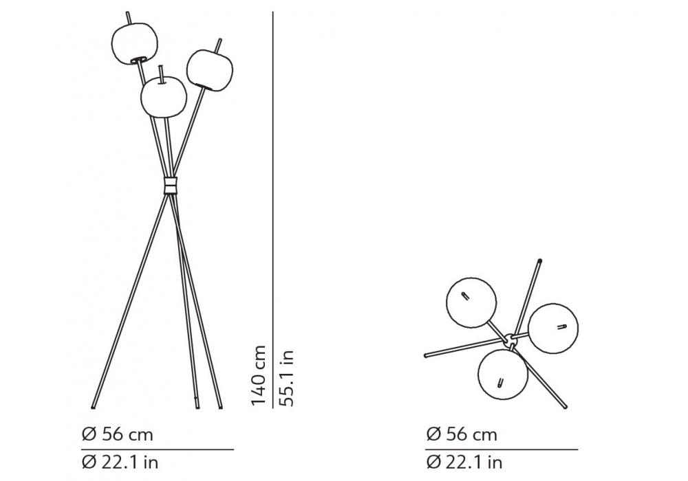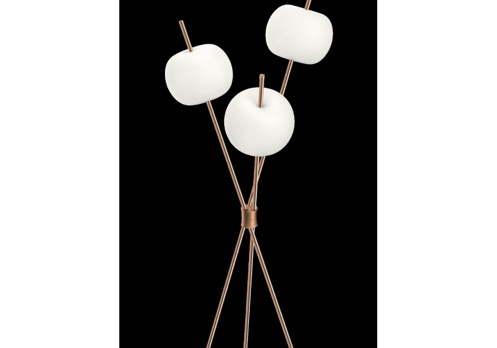 Kushi firmata da Alberto Saggia & Valerio Sommella per Kundalini è una lampada da terra con diffusore in vetro opale incamiciato e soffiato e struttura in metallo verniciato nelle finiture: nero, rame e ottone.