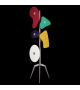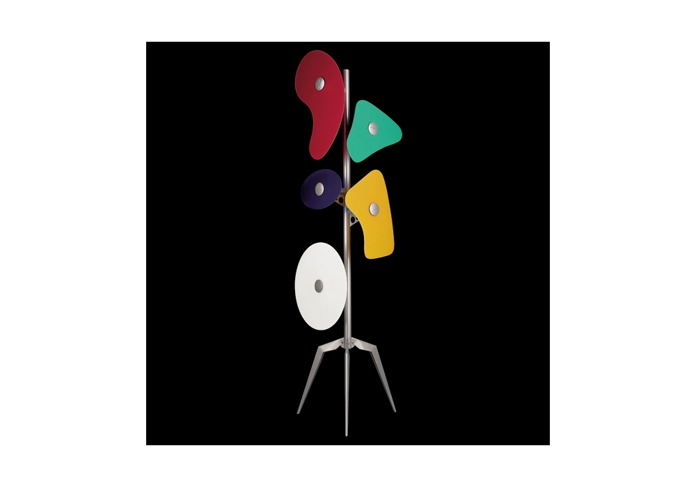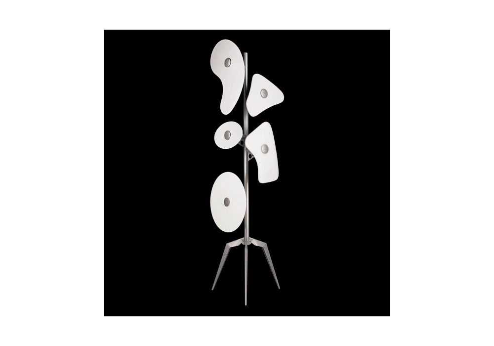 Orbital firmata da Ferruccio Laviani per Foscarini è una lampada da terra realizzata con lastre policromatiche o bianche e poliformi in vetro serigrafato, montate su una struttura in metallo laccato. La sorgente luminosa adottata è di tipo LED o alogena alimentata da un cavo in materiale plastico trasparente. Orbital è disponibile in differenti finiture.