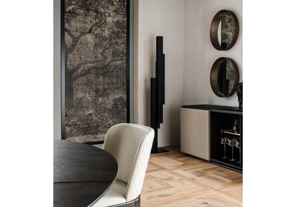 Manhattan firmata da Brogliato Traverso per Cattelan Italia è una lampada da terra con struttura in acciaio verniciato graphite, nero o titanio.