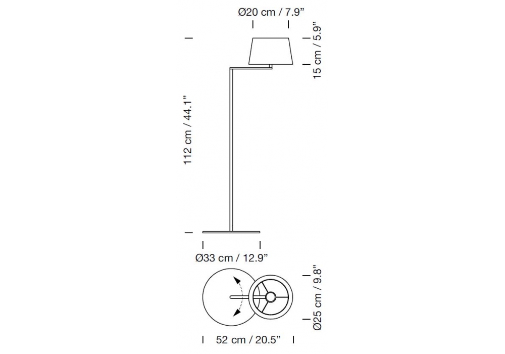 Americana firmata da Miguel Milà per Santa&Cole è una lampada da terra con struttura in nichel satinato e paralume in lino bianco.
