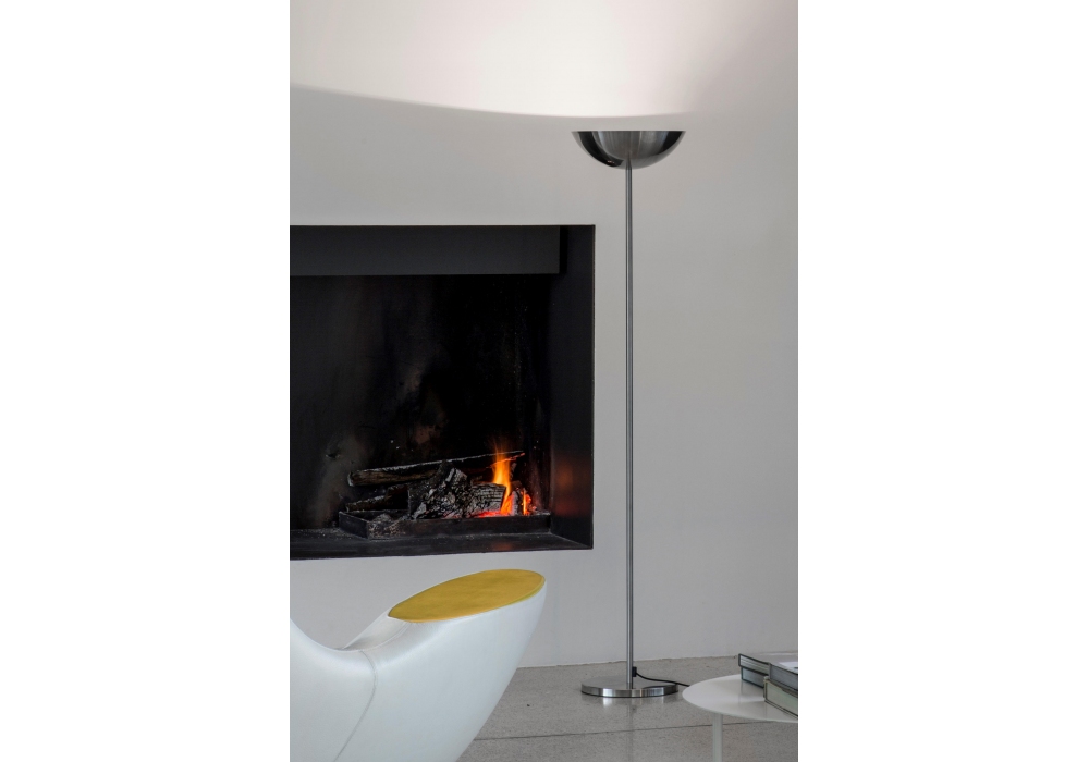 V.D.L firmata da Richard Neutra per Martinelli Luce è una lampada da terra con base circolare e stelo tubolare interamente realizzata in acciaio inox. Il diffusore a coppa è sempre in accio inox ed adotta una sorgente luminosa di tipo LED integrato con variatore di luce su cavo di alimentazione.