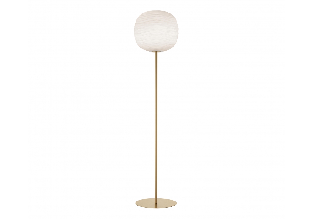 Gem firmata da Ludovica & Roberto Palomba per Foscarini è una lampada da terra con struttura portante in metallo verniciato e base circolare. Il diffusore di forma tondeggiante è in vetro soffiato opaco con superficie a rilievo. La sorgente luminosa adottata è con innesto E27 di tipo LED o alogena alimentata da un cavo in materiale plastico trasparente. Gem è disponibile in differenti finiture di struttura.