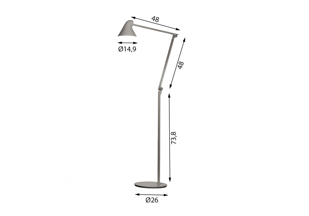 NJP firmata da Nendo per Louis Poulsen è una lampada da terra dal design ergonomico con un sistema meccanico a due bracci mobili. La lampada è strutturata da bracci e paralume in alluminio, snodi in alluminio anodizzato e base in acciaio. La sorgente luminosa adottata è di tipo LED in differenti gradazioni di luce. NJP è disponibile in diverse finiture.