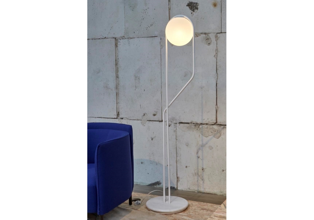 Astrée firmata da Benjamin Graindorge per Ligne Roset è un lampada da terra con base rotonda in marmo di Carrara e struttura in tubolare d'acciaio. Finitura in laccato epossidico bianco satinato, RAL 9016. Diffusore sferico in vetro opale soffiato a mano. Interruttore a pedale trasparente.