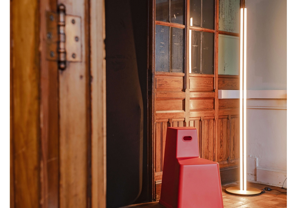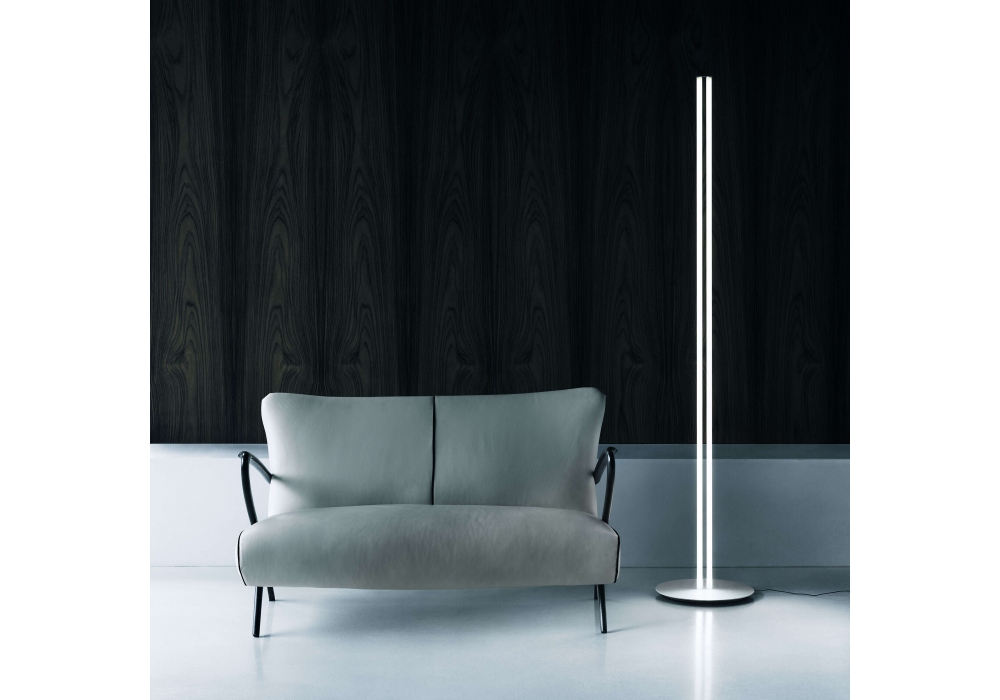 Coordinates firmata da Michael Anastassiades per Flos è una lampada da terra a luce diffusa composta da due aste verticali orientabili in fase di installazione fissate a una base con disco di copertura in alluminio anodizzato. Ogni elemento è costituito da un corpo in alluminio estruso anodizzato e da un diffusore in silicone ottico platinico con striscia LED integrata. Cavo di alimentazione con dimmer a pedale per la funzione di accensione/spegnimento e la regolazione della luminosità dal 10 al 100%. Spina di alimentazione multistandard.