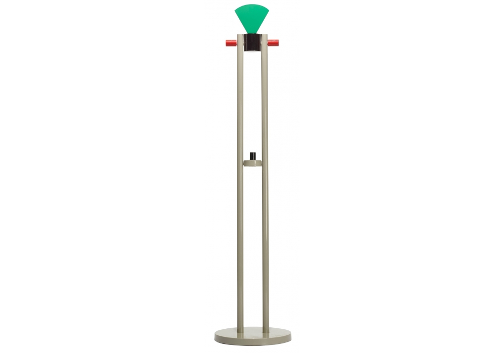Madison firmato da Aldo Cibic per Memphis Milano è una lampada da terra con fonte di illuminazione orientabile. Lampadina lineare alogena 300W.