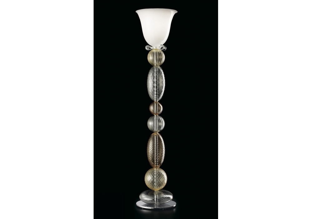 Perseus firmata da Marcel Wanders per Barovier & Toso è una lampada da terra con base circolare, asta verticale e decorazioni in metallo color cromo lucido. Il corpo lampada è strutturato da vari elementi geometrici in vetro veneziano. Il diffusore è a coppa svasata in vetro opalino e scherma delle sorgenti luminose di tipo LED. Perseus è disponibile in differenti finiture.
