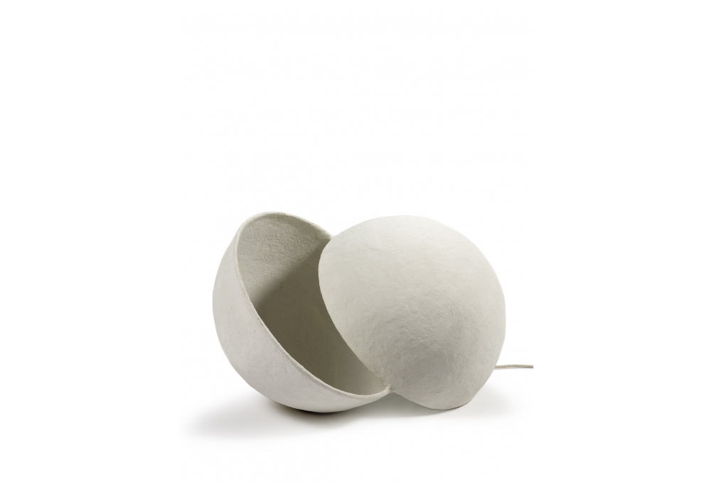 Earth Sphere firmata da Marie Michielssen per Serax è una lampada da terra, strutturata da due semisfere accostate l'una all'altra in cartapesta, in un unica finitura bianca. Adotta una sorgente luminosa LED o alogena non dimmerabile con innesto E27.