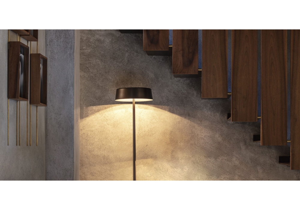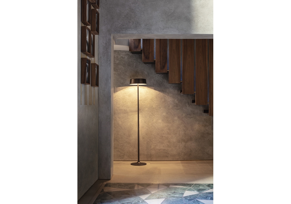China firmata da Nicola Gallizia per Penta è una lampada da terra interamente realizzata in metallo con base e paralume circolare verniciata in differenti finiture. La sorgente luminosa è di tipo LED con sistema dimmer su cavo di alimentazione.