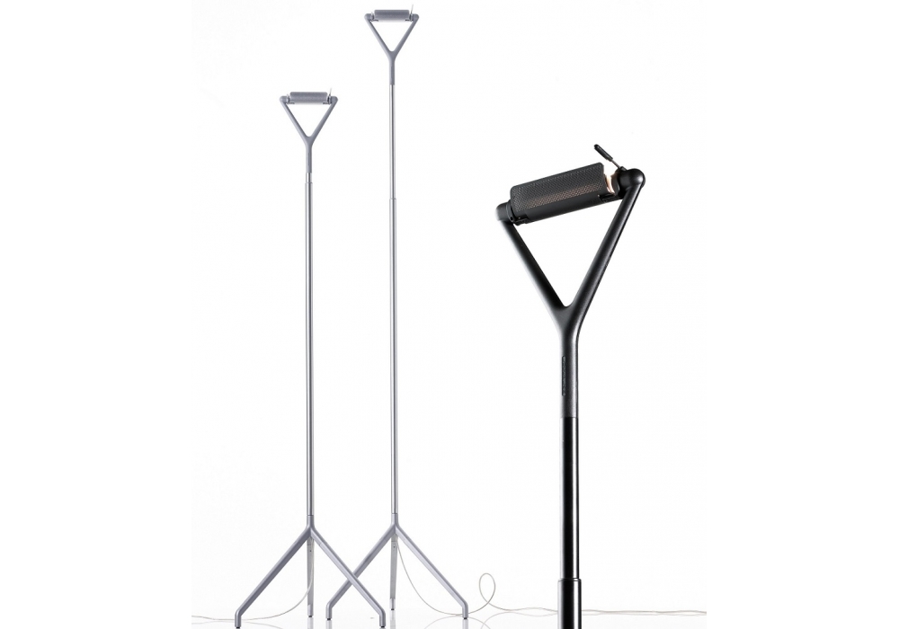 Lola firmata da Alberto Meda e Paolo Rizzatto per Luceplan è una lampada da terra regolabile in altezza grazie allo stelo telescopico realizzato in alluminio. Riflettore in metallo microforato con vetro di protezione anti-UV in Pyrex (per versione alogena). Disponibile in diverse finiture.