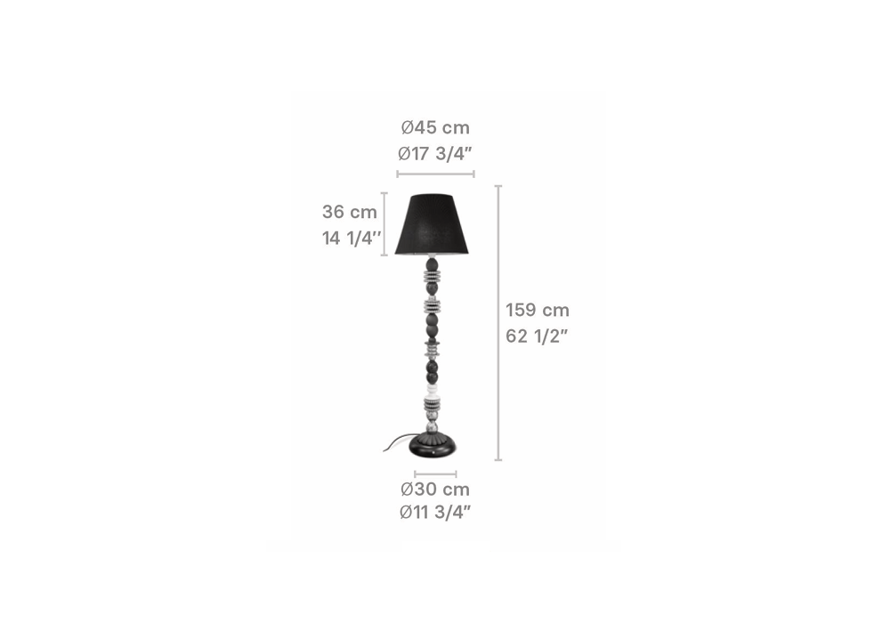 Firefly by Olga Hanono scolpita da Dept. Diseño y Decoración e firmata da Olga Hanono per Lladró è una lampada da terra. Il corpo lampada è costituito da porcellana lucida con particolari in vari colori metallizzati, mentre il paralume è in tessuto di colore nero.