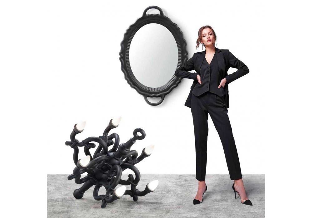 Fallen Chandelier firmata da Studio Job per Qeeboo è una lampada da terra interamente realizzata polietilene o fibra di vetro in diverse finiture. La sorgente luminosa adottata è di tipo LED con gradazione bianca. Fallen Chandelier è disponibile in due differenti versioni, la versione M è ricaricabile mentre la versione XL è con presa a muro.