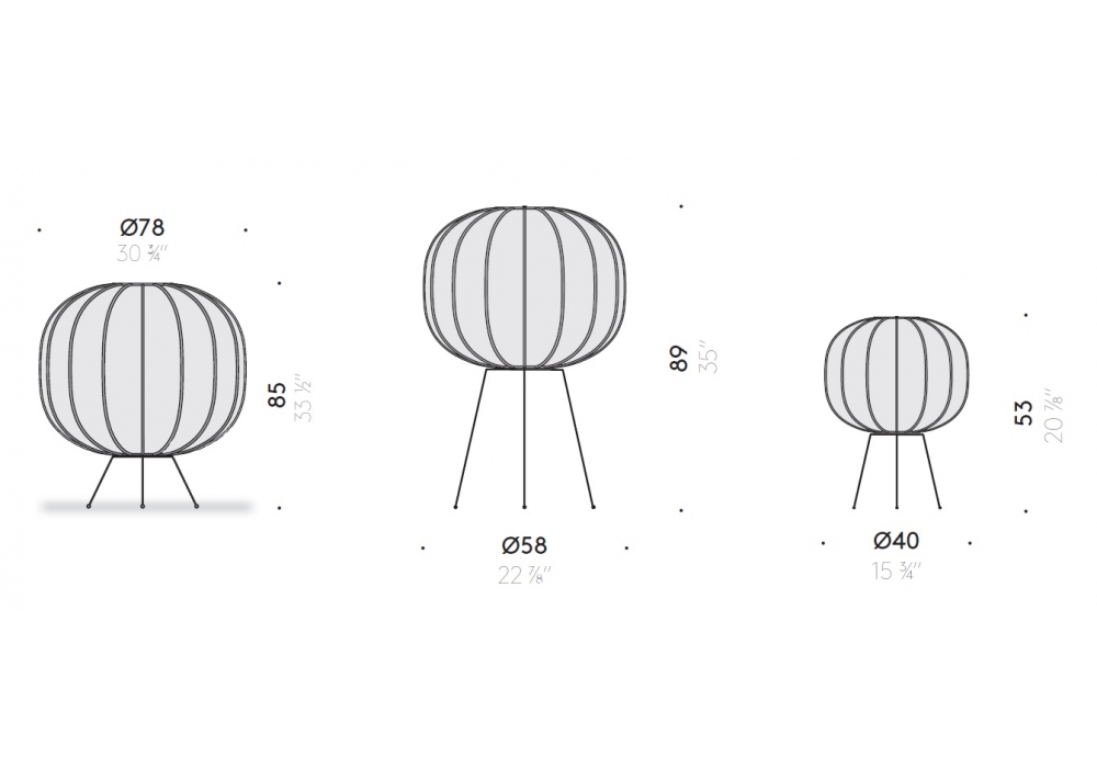 | Dimensioni | - Ø 40 x H 53 cm; - Ø 58 x H 89 cm; - Ø 78 x H 85 cm. |