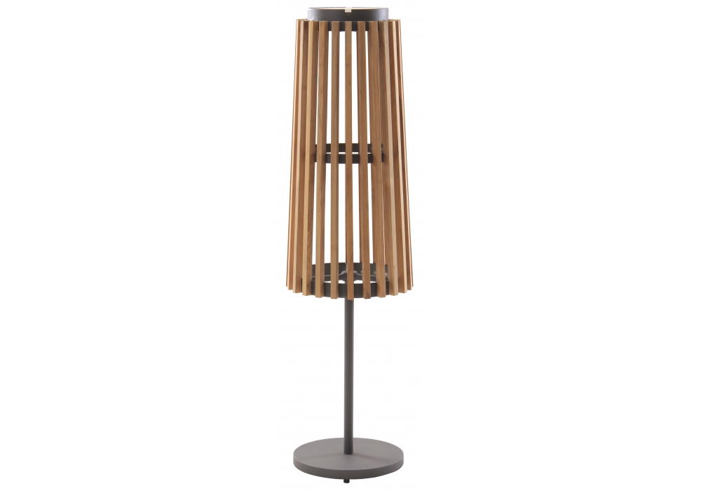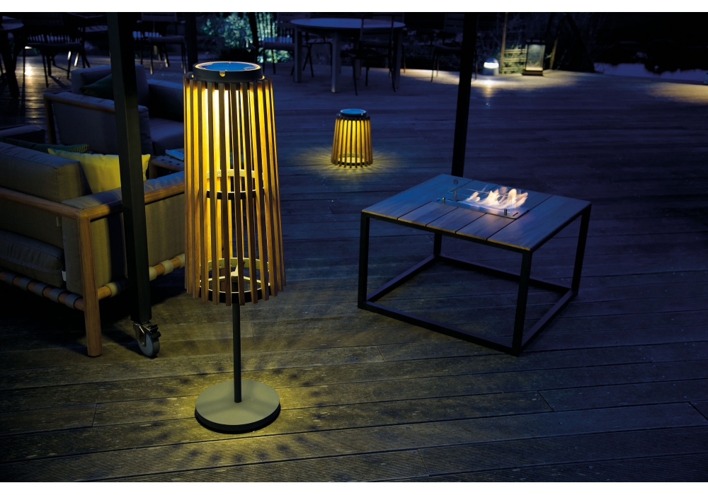 Solare prodotta e firmata da Unopiù è una lampada da terra per esterni ricaricabile dotata di pannello solare e porta usb. Il corpo lampada è realizzato con listelli di legno teak ed alluminio. La sorgente luminosa adottata è di tipo LED dimmerabile a tre intensità. Solare è disponibile in differenti finiture e modelli.