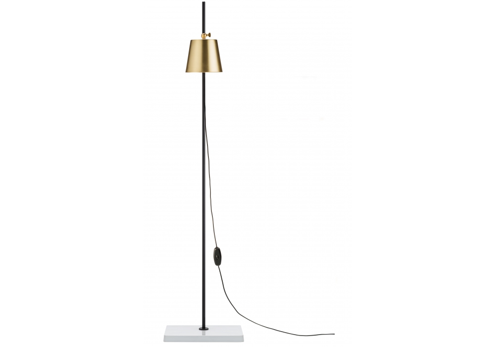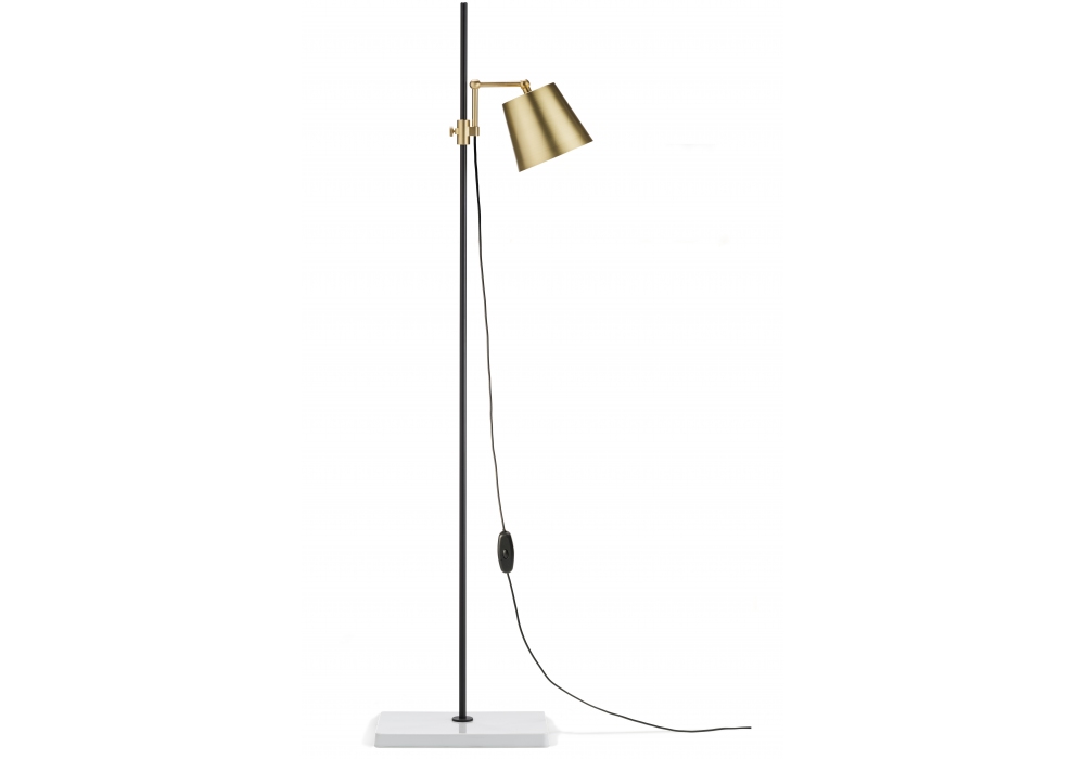 Lab Light firmata da Anatomy Design per Karakter è una lampada da terra con diffusore in ottone spazzolato, laccato trasparente, stelo in acciaio verniciato e base in porcellana bianca. Alimentatore con spine intercambiabili (EU / UK / AU) inclusi.