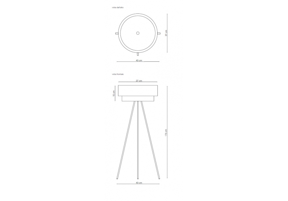 Planet PT firmata da Riflessi è una lampada da terra con struttura in metallo. Disponibile nella versione completamente verniciata con trattamento epossidico in grafite, o con cerchio superiore e gambe verniciate con trattamento epossidico in grafite o oro rosa, e cerchio inferiore verniciato con trattamento satinato galvanico rame.