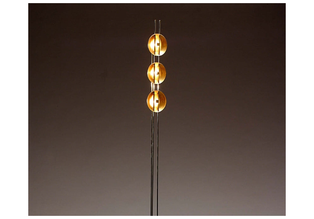 Sybarite firmata da Ombre Portée è una lampada da terra realizzata in ottone spazzolato e cerato e base in legno tinto.