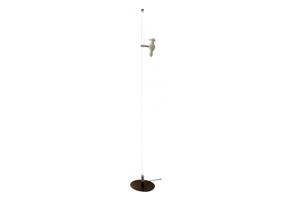 Accipicchio firmata da Matteo Ugolini per Karman è una lampada da terra a led con struttura in alluminio nero opaco e diffusore in vetro bianco satinato. Disponibili accessori. Uso interno.