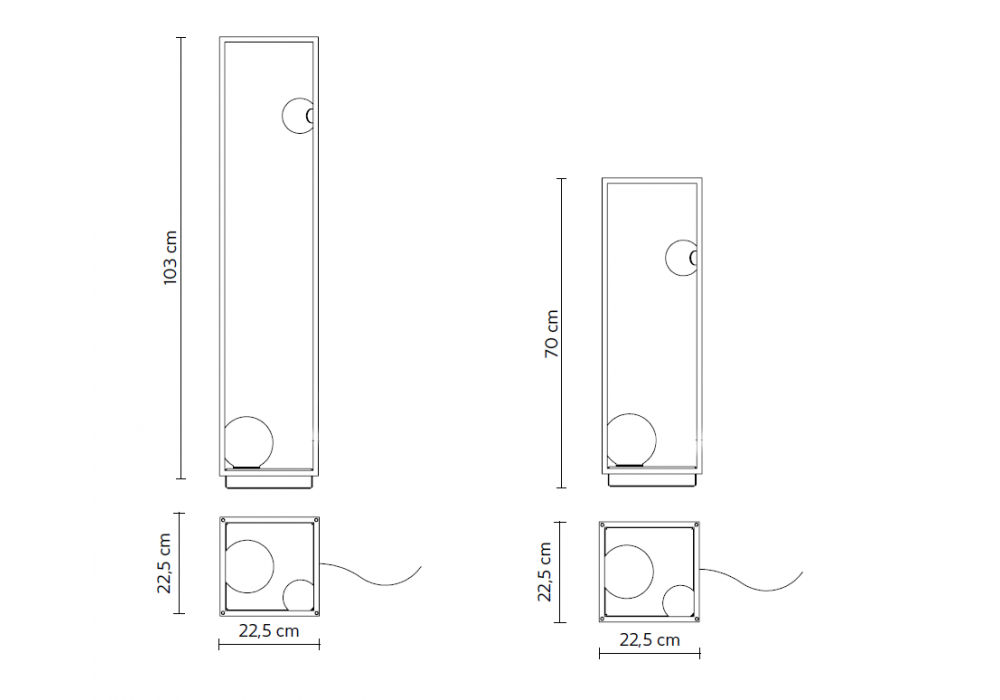 | Dimensioni | • 22,5 x 22,5 x H 70 cm; • 22,5 x 22,5 x H 103 cm |