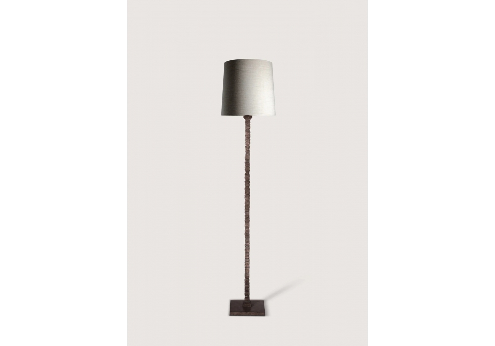 Static firmata e prodotta da Porta Romana è una lampada da terra con base quadrangolare in ottone e struttura portante in materiale composito verniciato. Il paralume è di forma circolare in tessuto in diverse finiture e scherma una sorgente luminosa con innesto E27 di tipo LED.