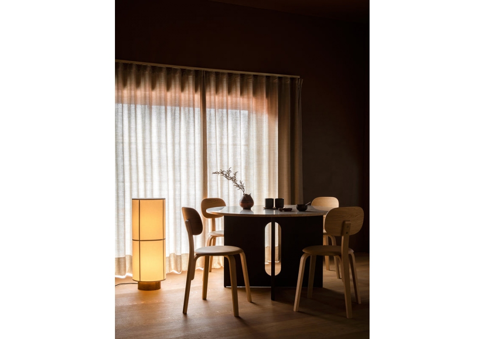 Hashira firmata da Norm Architects per Audo Copenhagen è una lampada da terra realizzata in acciaio e paralume in tessuto.