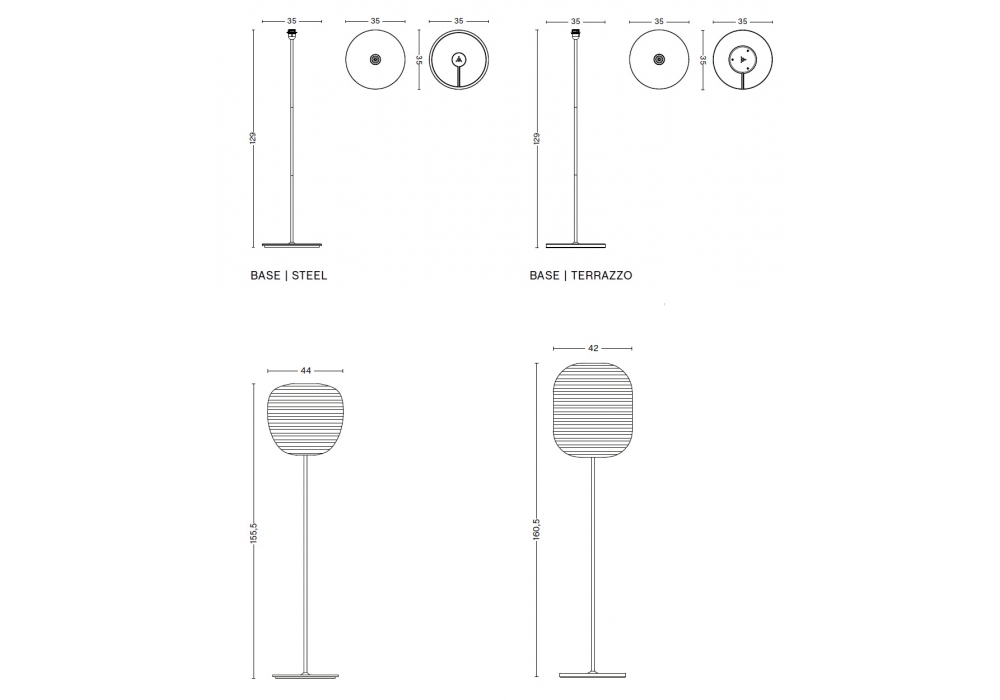 | Dimensioni | Ø 44 x H 155.5 cm; Ø 42 x H 160.5 cm. |