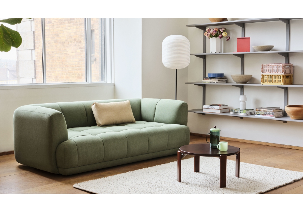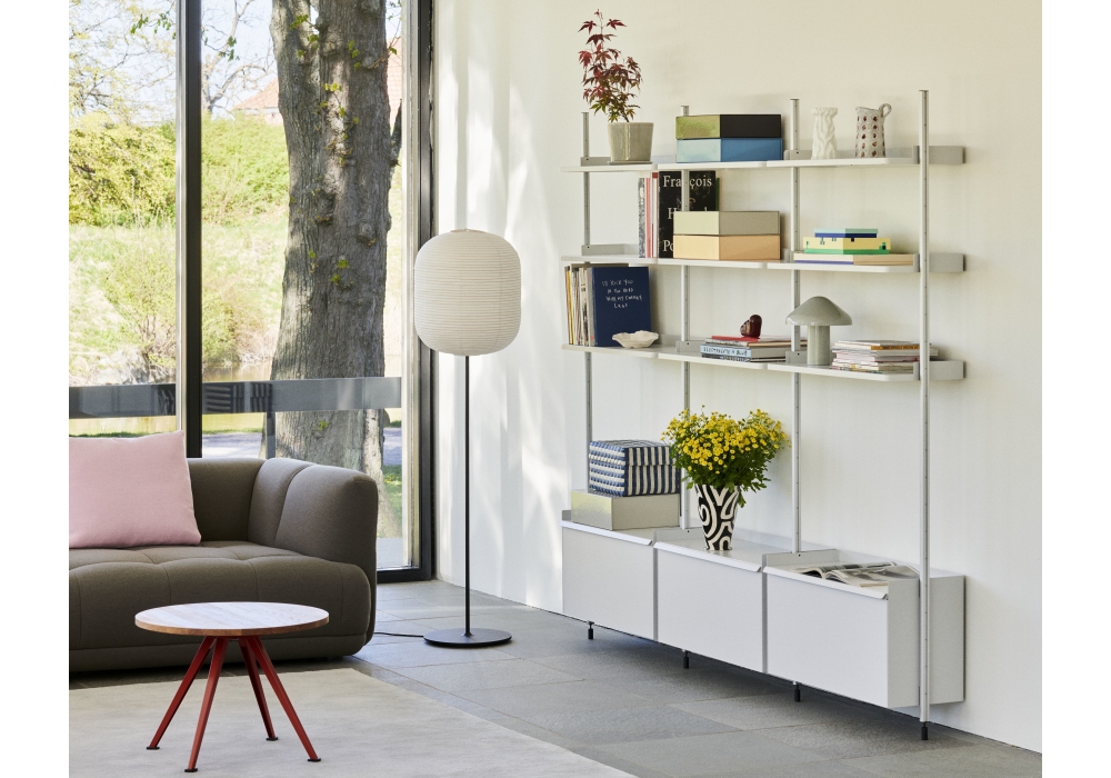 Common prodotta e firmata da Hay è una lampada da terra con struttura e base in acciaio verniciato con finitura a polvere o terrazzo. Base inferiore in ghisa pressofusa. Paralume in carta di riso e bambù con struttura interna in filo d'acciaio e cavo in tessuto intrecciato con isolamento in silicone ed interruttore on/off. Disponibile in differenti finiture e dimensioni.