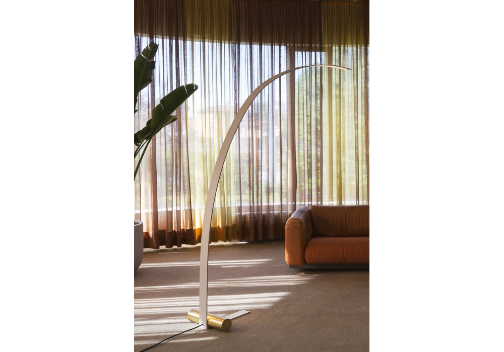 563 Nastro firmata da Studiopepe per Tooy è una lampada da terra con struttura in alluminio verniciato a polvere, cilindro in metallo verniciato, in legno o ottone spazzolato. Disponibile in diverse finiture e dimensioni.