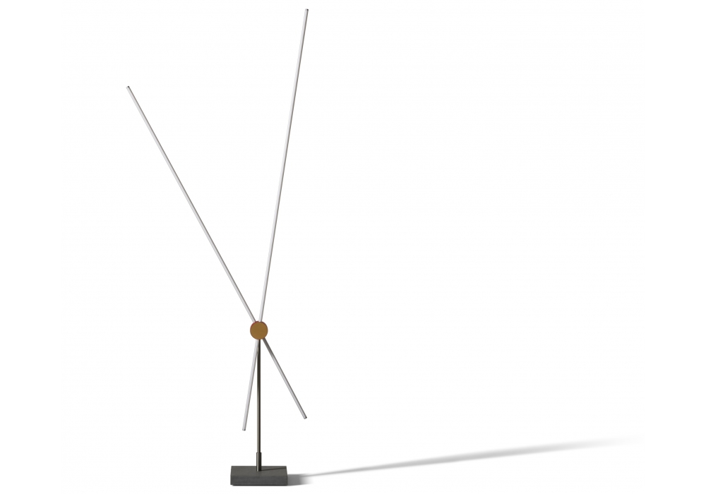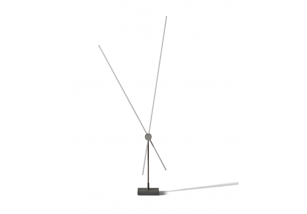 EITIE Floor firmata da Tobia Scarpa per Cassina è una lampada da terra realizzata in alluminio e PC, con giunto metallico laccato in diverse finiture. Composta da due strisce LED e base in pietra Serena.