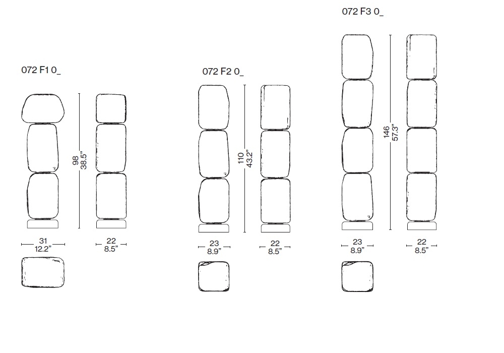| Dimensioni | Floor III_ 31 x 22 x H 98 cm - 28W; Floor IV_ 23 x 22 x H 110 cm - 25W; Floor V_ 23 x 22 x H 146 cm - 39W. |