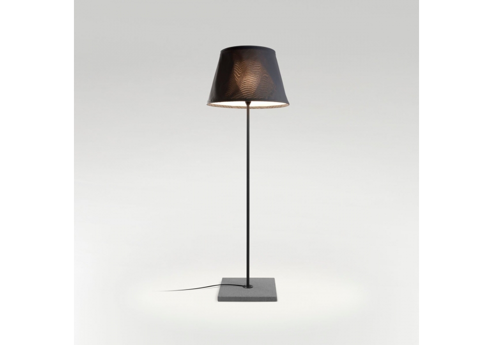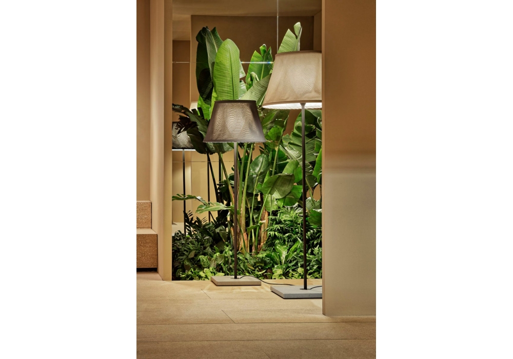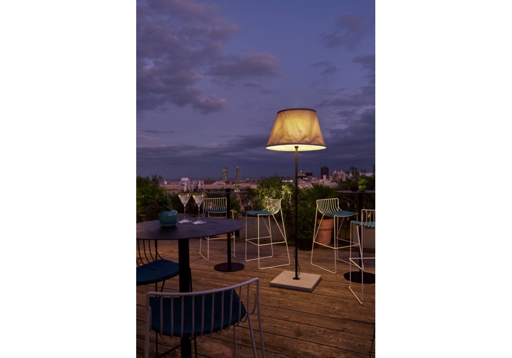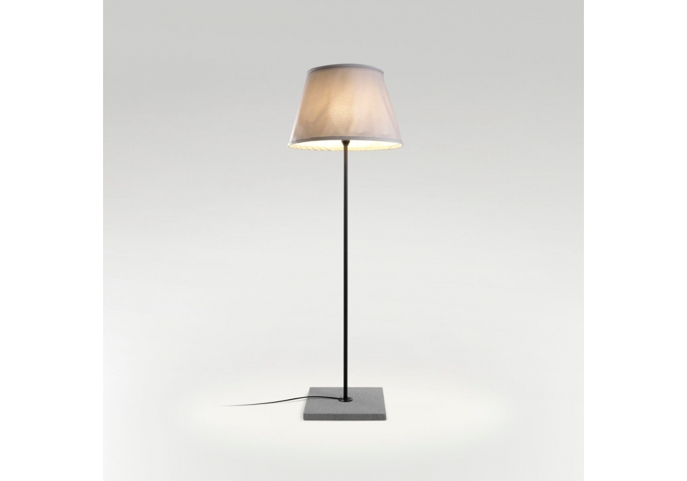 Txl 2019 firmata da Joan Gaspar per Marset è una lampada da terra con base in cemento, stelo in acciaio inox, diffusore in vetro bianco, paralume in tessuto in diversi colori e interno nella finitura bianco. Disponibile in due dimensioni.